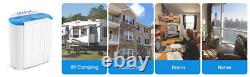 Specifications: Frame Material: PP+ABS Color: Blue & White Inside Material: Stainless steel Washing Capacity: 5kg Washer: 3kg Spin Cycle: 2kg Overall Dimensions: 34.5D x 54W x 60H (cm) Power Supply: 230v/50Hz Total Power: 360W Net weight: 10kg Length of inlet pipe: 120cm Drains by Gravity(The drain hose must be below the machine base level to empty) UV Sterilization Certifications: CE Certificate Features: Twin tub dual function design, this washing machine can save your precious time by washing and spinning dry loads. Timer control: wash time is between 0-15 minutes, spin time is 1-5 minutes Three washing modes-Standard/Drain/Soft The portable washer machine features a 1300RPM powerful motor with a max frequency of 60Hz Spin dryer-It gets your clothes 90% Lightweight and space-saving. Portable Washing Machine Mini 5kg Twin Tub Dorm Compact Dryer Laundry Washer.
